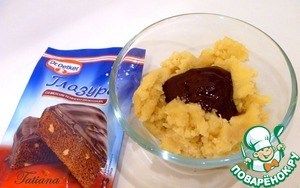 Марципан раскрошите с миску, добавьте растопленную глазурь.