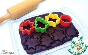 Хорошо охлаждённую шоколадно-марципановую массу, раскатайте (на пластиковой доске, или воспользуйтесь пищевой пленкой)в пласт толщиной 1 см. При помощи небольших (3*3 см.)выемок заготовьте фигурки, или просто-порежьте на небольшие квадраты. Уберите конфеты на холод.