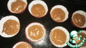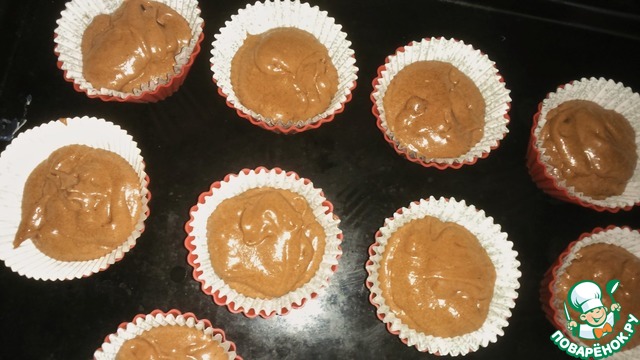 Выложить тесто в формы для маффинов, заполняя на 2/3. Выпекать в заранее разогретой духовке (180´C) около 20 минут (ориентируйтесь по вашей духовке). Проверить готовность деревянной шпажкой.