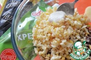 Сыр натереть, добавить майонез, перемешать. НЕ СОЛИТЬ!