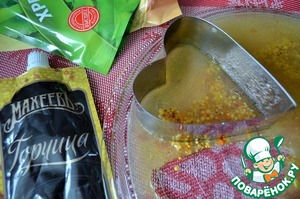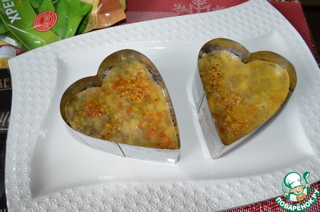 Добавить горчицу, залить в ровное неглубокое блюдо, дать застыть. -