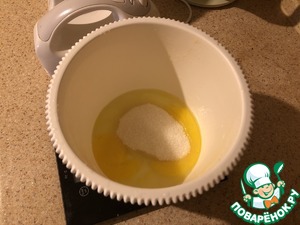 Взбиваем хорошенько в миксере 2 яйца с сахаром.