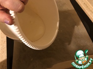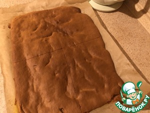 Тесто разравниваем на противне, застеленном антипригарной пергаментной бумагой, слегка смазанной сливочным маслом.