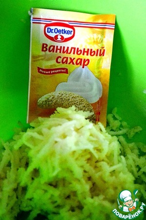 В натертую айву добавляем ванильный сахар - 1 пакет от ТМ Dr. Oetker
