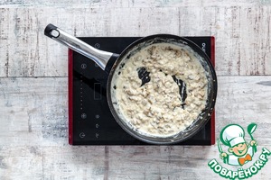 Немного посолите, влейте сливки и доведите до кипения. Поперчите, добавьте плавленый сыр, перемешайте до растворения и снимите с огня.
