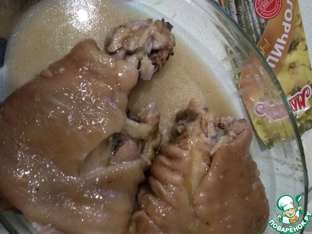 Поместить её в форму, лучше под размер рульки. Налить на дно 1/2 стакана бульона. И отправить в разогретую до 190 С духовку на 35-40 минут. До зарумянивания.