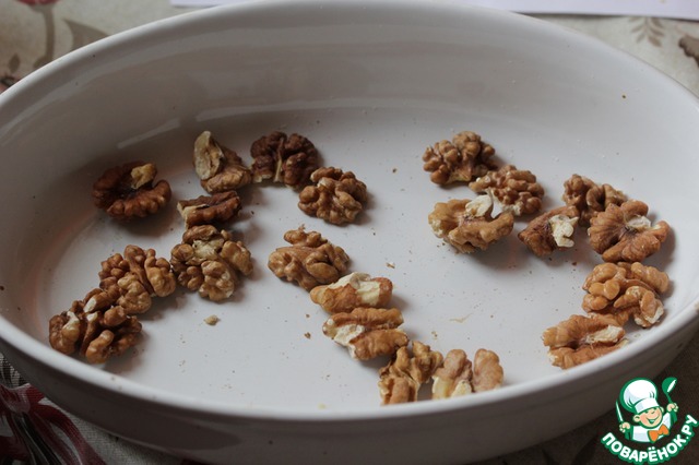 Орехи обжарить в течение 15 минут в духовке, разогретой до 150°С. Остудить.