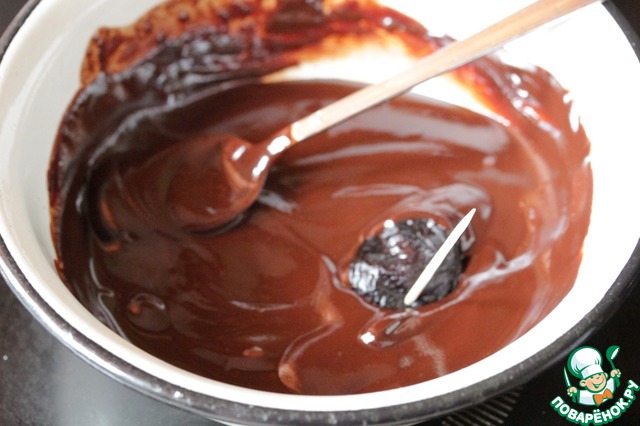 Окунуть каждую ягоду в шоколад при помощи специальной вилочки для конфет или зубочистки. Излишки шоколада удалить о край миски.