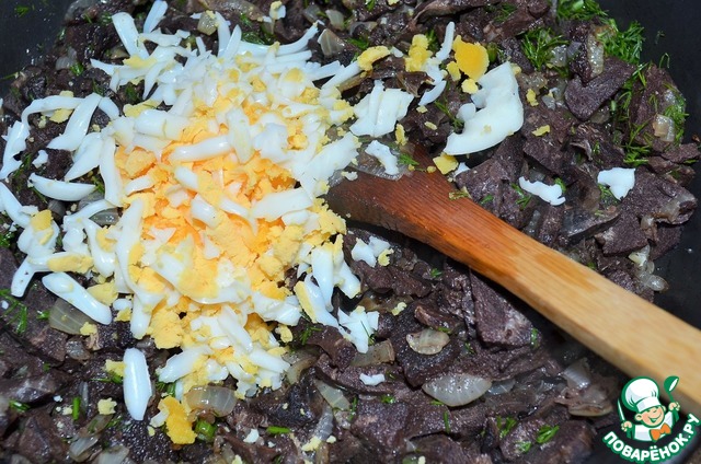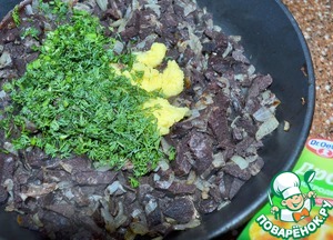 Добавить к начинке укроп и топленое ( сливочное масло).