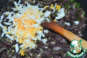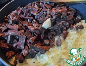 Добавить нарезанное легкое, обжарить, посолить, заправить перцем. -