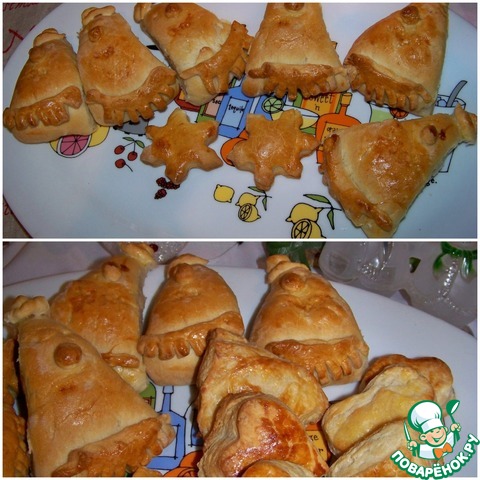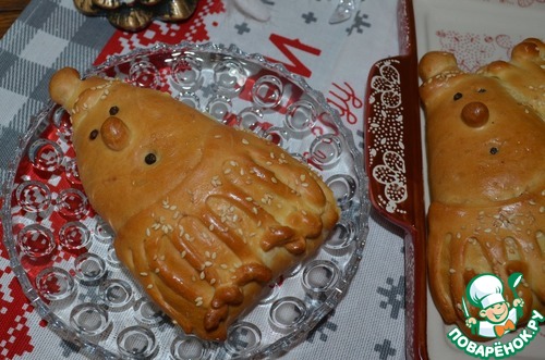 Предлагаю еще один неплохой вариант разборного пирога. А чтобы было и красиво - оформим его по-новогоднему, сформуем пирожки "Дедушка Мороз" и из них соберем большой праздничный пирог. Р.S.: задумав и начав печь, я и не думала что получится так красиво, празднично, по-новогоднему! Угощайтесь.