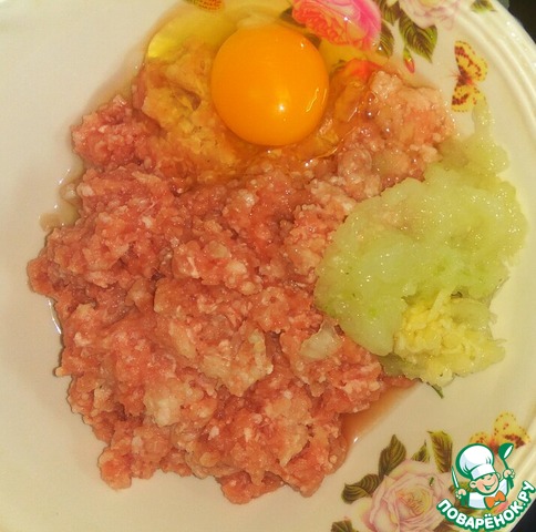 В фарш добавить 1 маленькое яйцо или 1/2 крупного яйца, натертый на мелкую терку лук, измельчённый чеснок. Посолить и поперчить по вкусу.