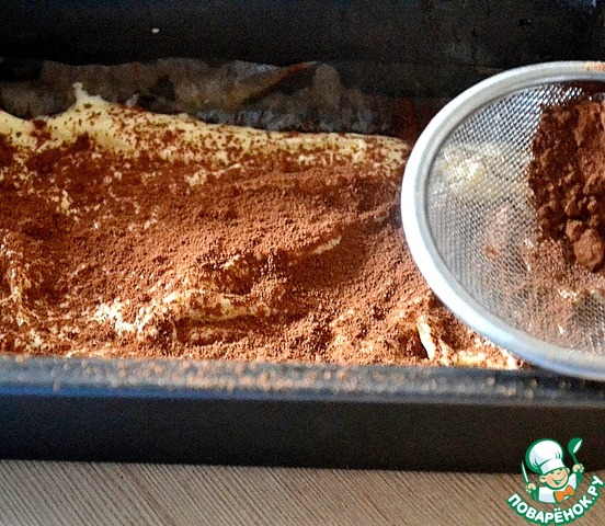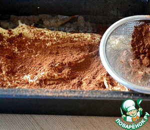 Выкладываем треть теста - посыпаем какао, потом еще треть - и снова какао.
