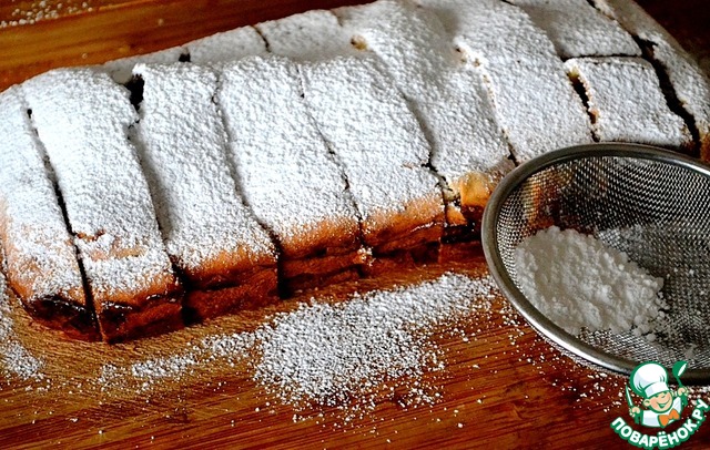 Достаем из формы, посыпаем его сахарной пудрой. -