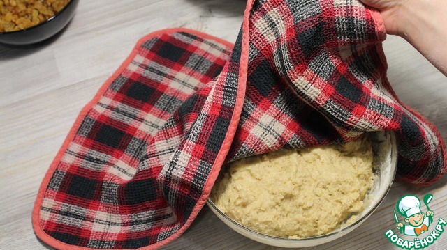 Частями вмешиваем муку. И оставляем тесто на 2 часа в теплом месте