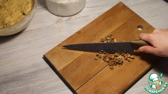 Измельчим орехи. У меня грецкие (в классическом штоллене используют миндаль)