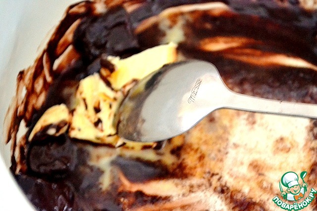 • Растапливаем в отдельном ковшике шоколад и сливочное масло