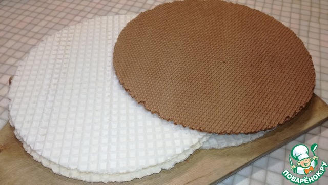 • Берём вафельные коржи, можно как светлые, так и тёмные. Отправляем в кухонный комбайн и измельчаем в крошку.