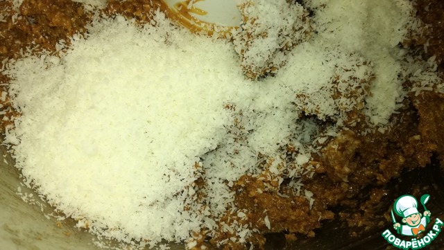 • Добавляем кокосовую стружку и снова хорошо перемешиваем в кухонном комбайне.
