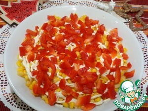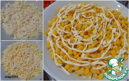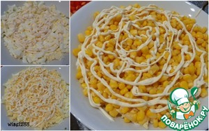 Предпоследний слой - кукуруза, промазанная майонезом. -