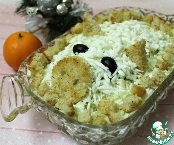 Его можно просто подать в салатнике и непосредственно перед подачей посыпать сухариками.