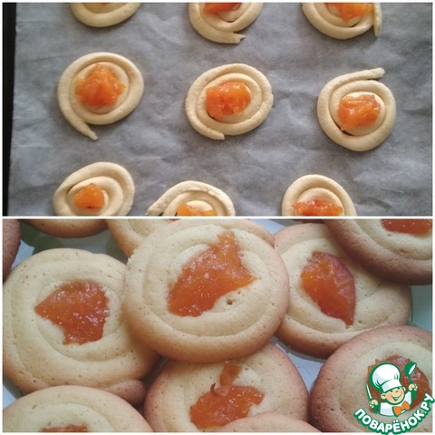 Предлагаю вам попробовать печенье из стандартного набора продуктов с потрясающим результатом! Рассыпчатое, хрустящее с нежной слегка тягучей кислинкой абрикосового джема ТМ "МахеевЪ"!!