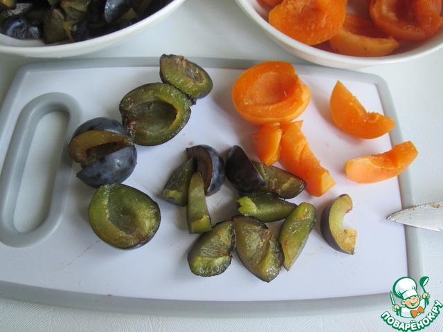 Сливы и абрикосы вымыть, удалить косточки и нарезать на кусочки.