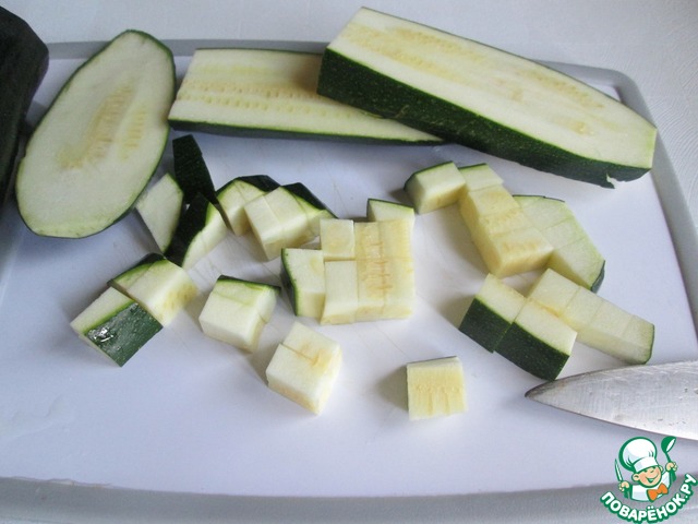 • Цуккини хорошо вымыть и нарезать на мелкие кусочки. Я не очищала, но это по желанию.