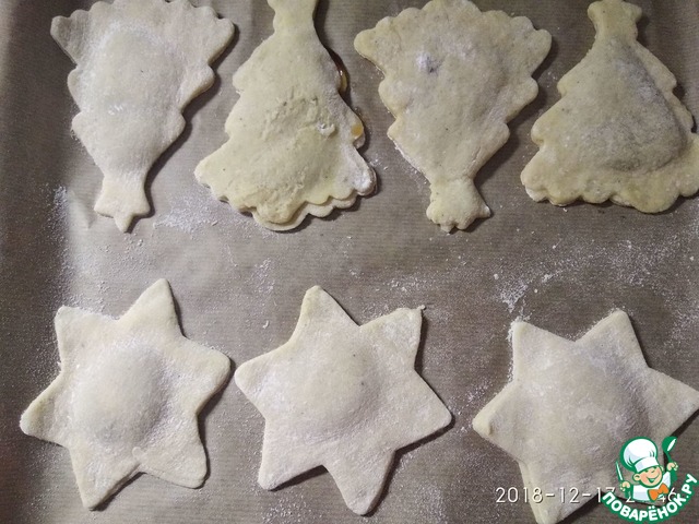 Охлажденное тесто раскатать толщиной 0,5 см, вырезать фигурки.