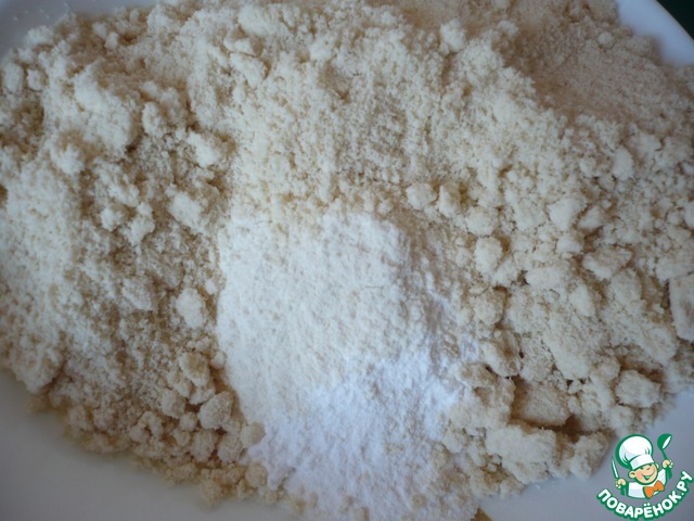 В миску просеиваем сахарную пудру со вкусом ванили ТМ Dr. Oetker и пшеничную муку. Всыпаем миндальную муку (можно заменить любой ореховой мукой). Все хорошо перемешать.