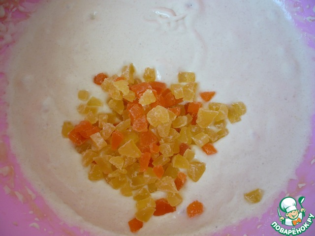 Всыпьте цукаты и снова все перемешайте.