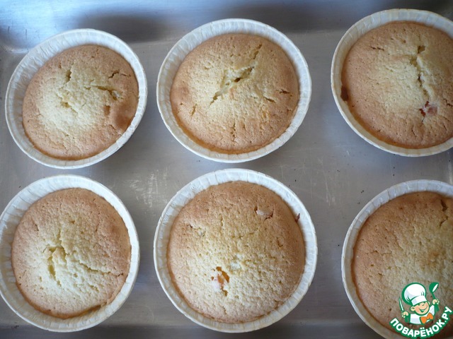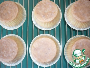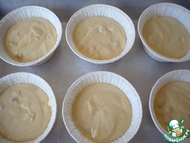 Возьмите любые небольшие формочки. У меня бумажные. Разлейте тесто. Оно почти не поднимается, поэтому уровень выбираете сами (нужно, чтобы толщина теста не была слишком большой). Небольшой размер формочек или теста в формочках - предпочтительнее, чтобы печь недолго и не пересушить.