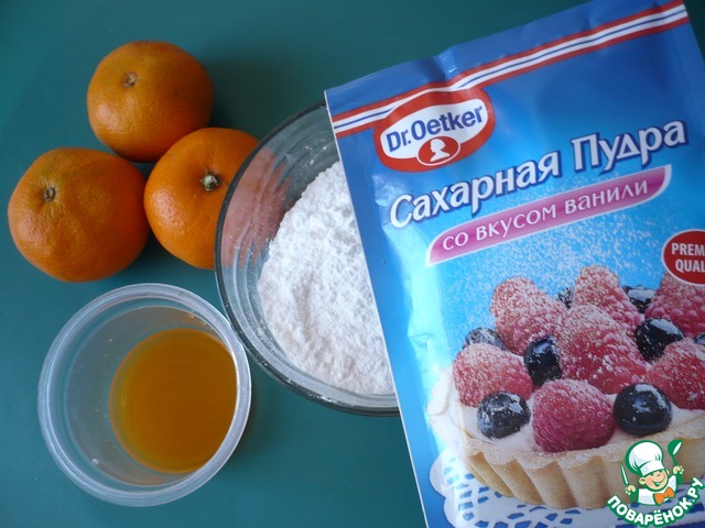 Приготовим глазурь: в чашке соедините сахарную пудру со вкусом ванили ТМ Dr. Oetker и мандариновый сок. Взбейте до однородности.