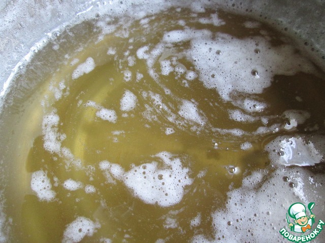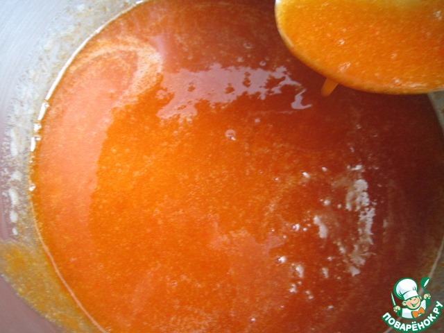 Теперь отжимаем набухший желатин от лишней жидкости, добавляем его к полученной массе, перемешиваем. При постоянном помешивании, доводим до кипения, но не кипятим! Перемешиваем до полного растворения желатина.