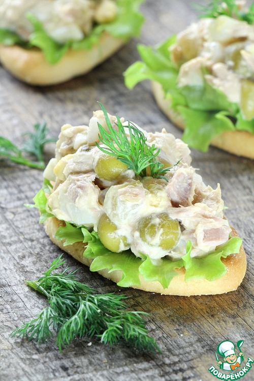 Рецепт «Тарталетки с тунцом и горчичной заправкой»:
