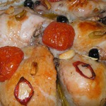 [+5]Сегодня на ужин был твой восхитительный рецепт!!!! Муж очень хвалил, а это, поверь, ох, не часто не бывает! Сказал, что очень сочная курочка получилась!!! И действительно, нарядная, пикантная, нежнейшая и очень ароматная!!! Всё к месту - соус, оливки, помидорки, чеснок и даже чили, я его колечками порезала. Вот только болгарского перца не оказалось под рукой, с ним ещё богаче и ароматнее получилось бы, но нам и так всё очень-очень понравилось. Подавала с булгуром, который я пропитала соком от мяса и овощей.