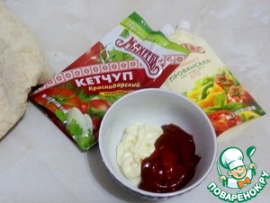 Надо приготовить намазку. Берем майонез Провансаль ТМ"МахеевЪ" и Кетчуп Краснодарский ТМ "МахеевЪ"