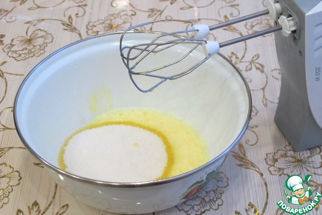 Яйцо взбить, добавить 1 стакан сахара. -