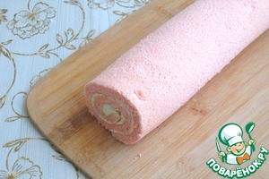 Готовый бисквит, пока он еще теплый свернуть в рулет и оставить до остывания.