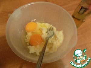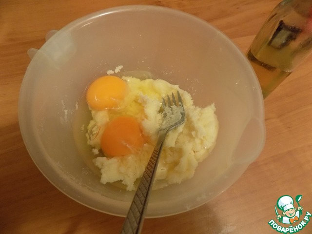 Добавляем яйца. Подвзбиваем немного. Я делала это вилкой. Добавила 2 ст л Лимончелло (ликёр).