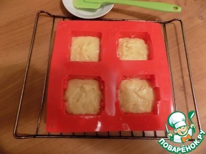 На готовность проверяем лучиной или зубочисткой. Тесто не должно приставать к ней. Готовы. Вынула форму и перевернула её на деревянную доску. Кексы поднялись, а домики мне нужны устойчивые. Немного прижала форму к доске. Дала полностью остыть.