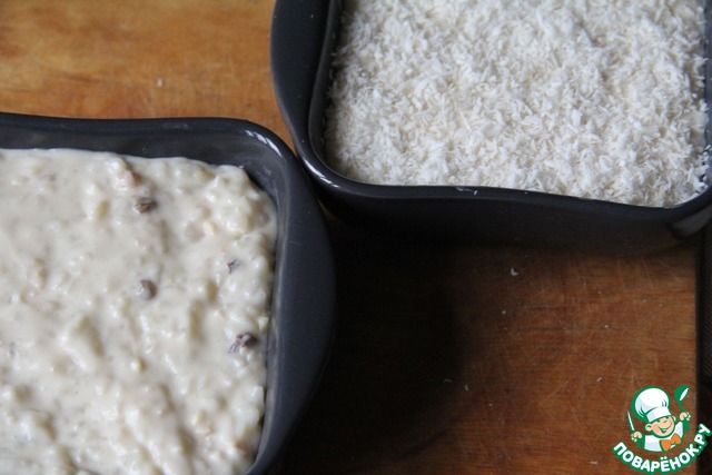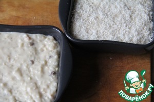 • Все хорошо перемешать и разделить по формам для запекания. Посыпать кокосовой стружкой.