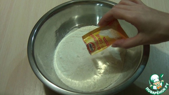 В ёмкость отправляем муку, сахар, ванильный сахар ( у меня от ТМ Dr. Oetker), соль - перемешиваем.