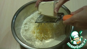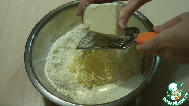 Подготовим продукты для теста. Маргарин подморозим, чтобы проще было его натирать на тёрку. Муку просеем.