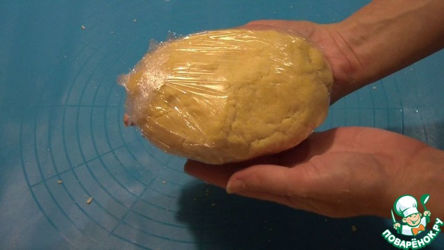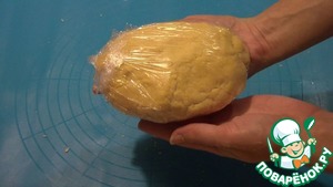 Добавляем желтки, воду и быстро собираем тесто в шар. Убираем тесто в пакет, и в холодильник на час.