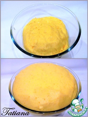 Разделочную поверхность присыпьте мукой, выложите готовое тесто.
