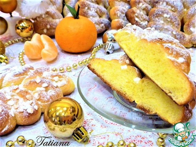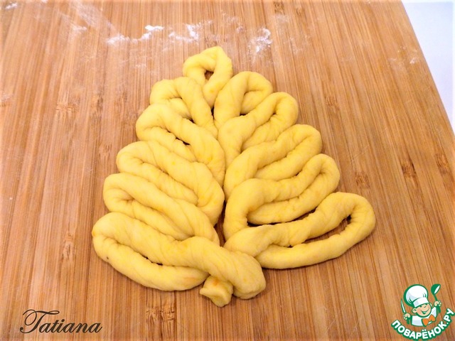 Рецепт «Творожно-мандариновые булочки "Ёлочки"»: