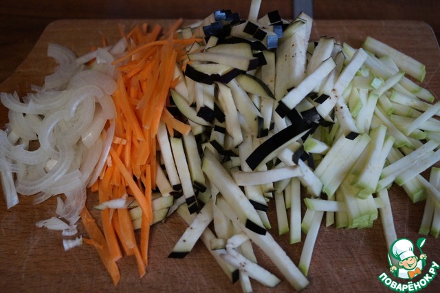 Овощи нарезаем соломкой.
