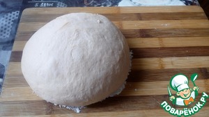 Частями всыпая муку, замешиваем тесто. Формируем из теста шар, кладем его в миску, смазанную растительным маслом, и накрываем полотенцем. Ставим тесто в теплое место до увеличения в объеме в 2 раза (приблизительно на час).