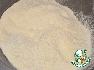 Маргарин растереть с мукой и солью в масляную крошку,